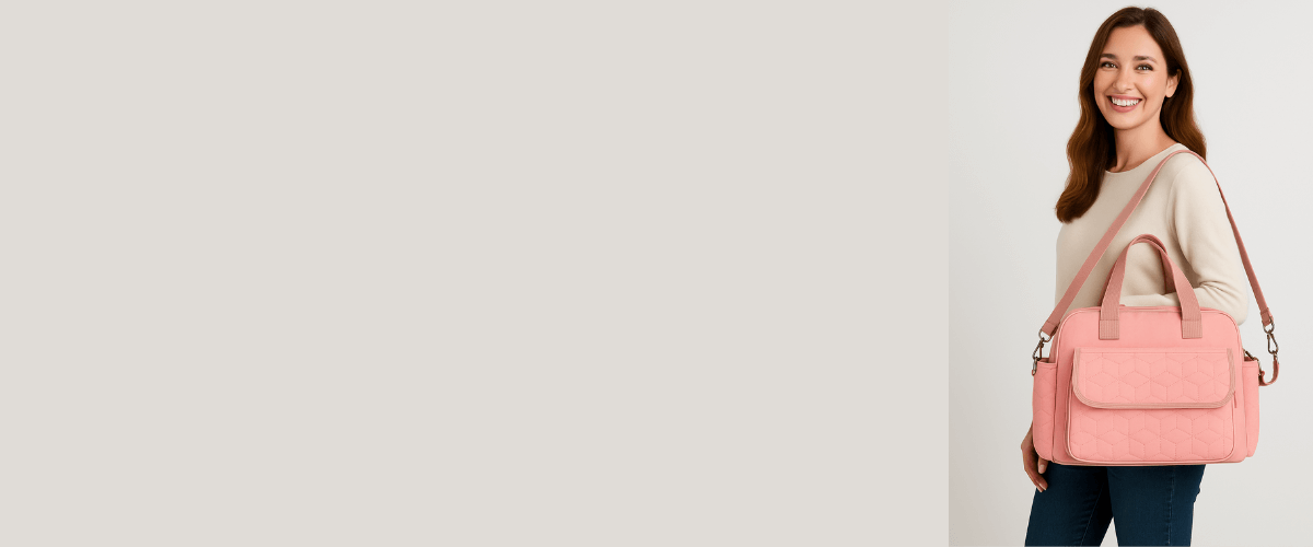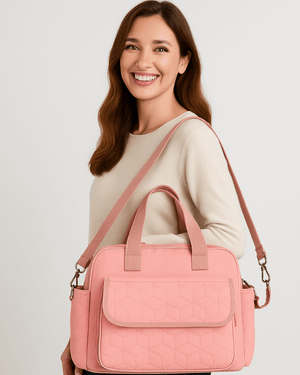 This stylish baby handbag is thoughtfully designed to be compact enough for easy carrying, yet spacious enough to store all your baby essentials